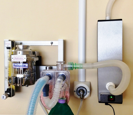 Unlike Aldasorbers (which are bacterial hazards), Activent will remove all anaesthetic waste gases, including Nitrous Oxide. It is normally wall-mounted, adjacent to the Anaesthetic work-station. It is easily installed by the average handyman, using the (supplied) starter installation kit. Normal anaesthetic protocols or equipment need not be altered.